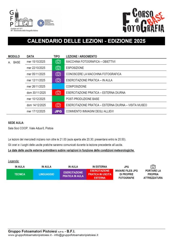 In allegato il calendario delle lezioni in formato PDF.